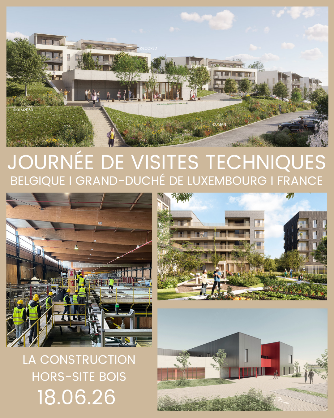 Ligne Bois, CAP Construction et Fibois Grand-Est, ainsi que les partenaires du projet Interreg VI Grande Région W.A.V.E., vous proposent une journée de visites techniques transfrontalière dédiée à la construction bois et aux approches hors-site, le 18 juin 2026.